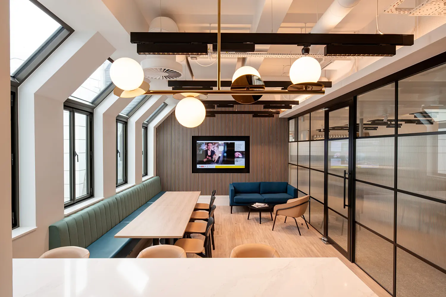 Lighting is no longer just about brightness; it’s about biology. Human centric lighting systems will mimic natural daylight patterns, supporting circadian rhythms and improving productivity. Expect tuneable white systems, layered task lighting and micro-zoning that adapts to different activities. Designers will curate lighting “recipes” for deep work, collaboration and decompression, creating environments that energise and restore throughout the day.