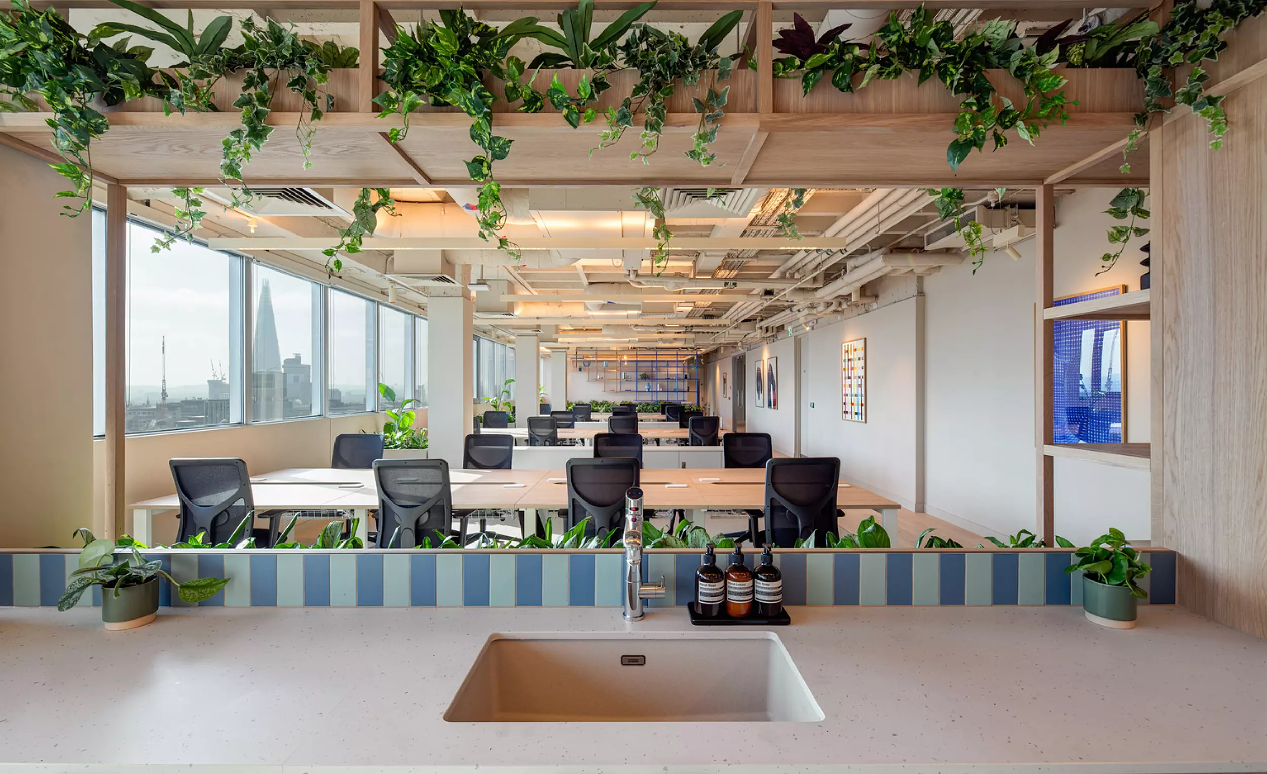 Biophilic office design is the practice of incorporating natural elements, such as plants, natural light and organic materials, into the built environment of the workplace. The goal is to create spaces that create a connection to nature, enhancing both the physical and psychological wellbeing of employees. Biophilic design considers the use of natural finishes like wood, stone and water features, as well as maximising daylight and creating outdoor like environments indoors. By blending nature with modern office spaces, biophilic design helps employees feel more connected to the natural world, contributing to a more vibrant, harmonious work atmosphere.