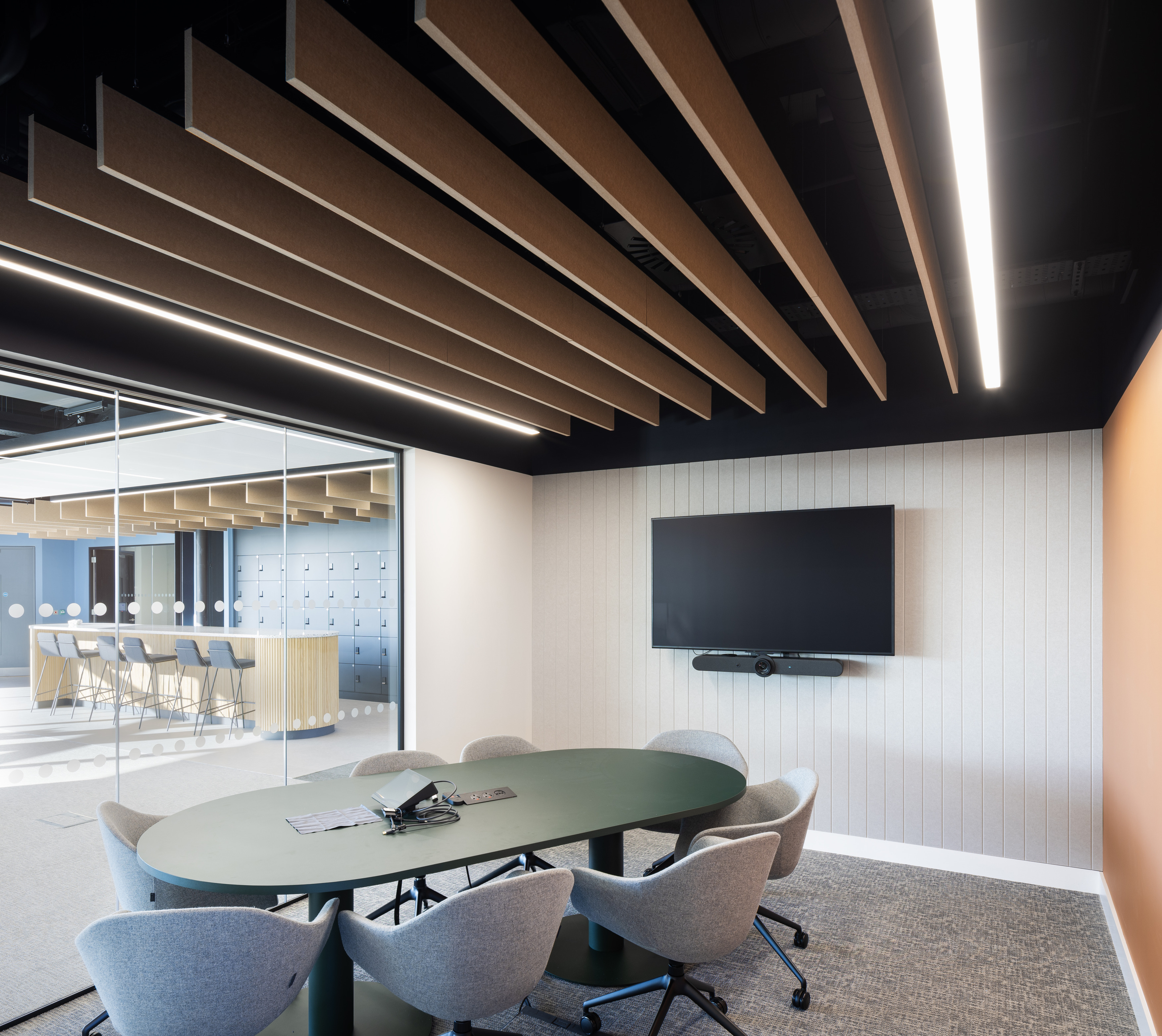 The design centres on choice, connection and movement to create a space that supports growth, brings business units closer together and helps people feel connected. The ground floor sets the tone for the whole building, with a welcoming reception leading onto a café and dining area, gym and shower facilities, a wellbeing room and an outdoor space. The prominent dining space has become a social anchor for the building, bringing all of the building together for lunch and informal meetings.